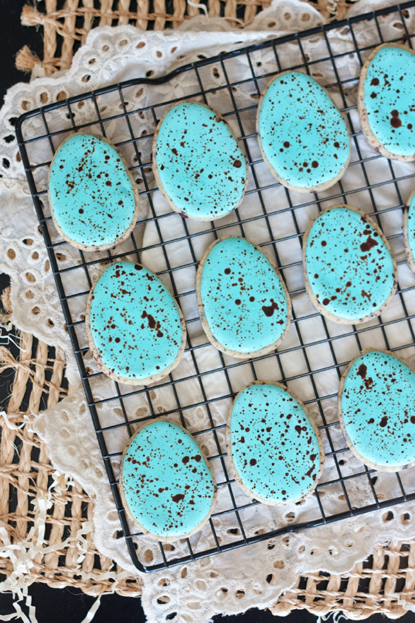 If you love malted milk robin eggs this time of year (or Whoppers year round!), you’re going to love these cookies. And if you’re not a big malted milk fan, just make traditional sugar cookies shaped like eggs instead and still decorate them with this great technique! They’re almost too pretty to eat, but I’m sure you can convince someone to give them a try. Happy Spring!!